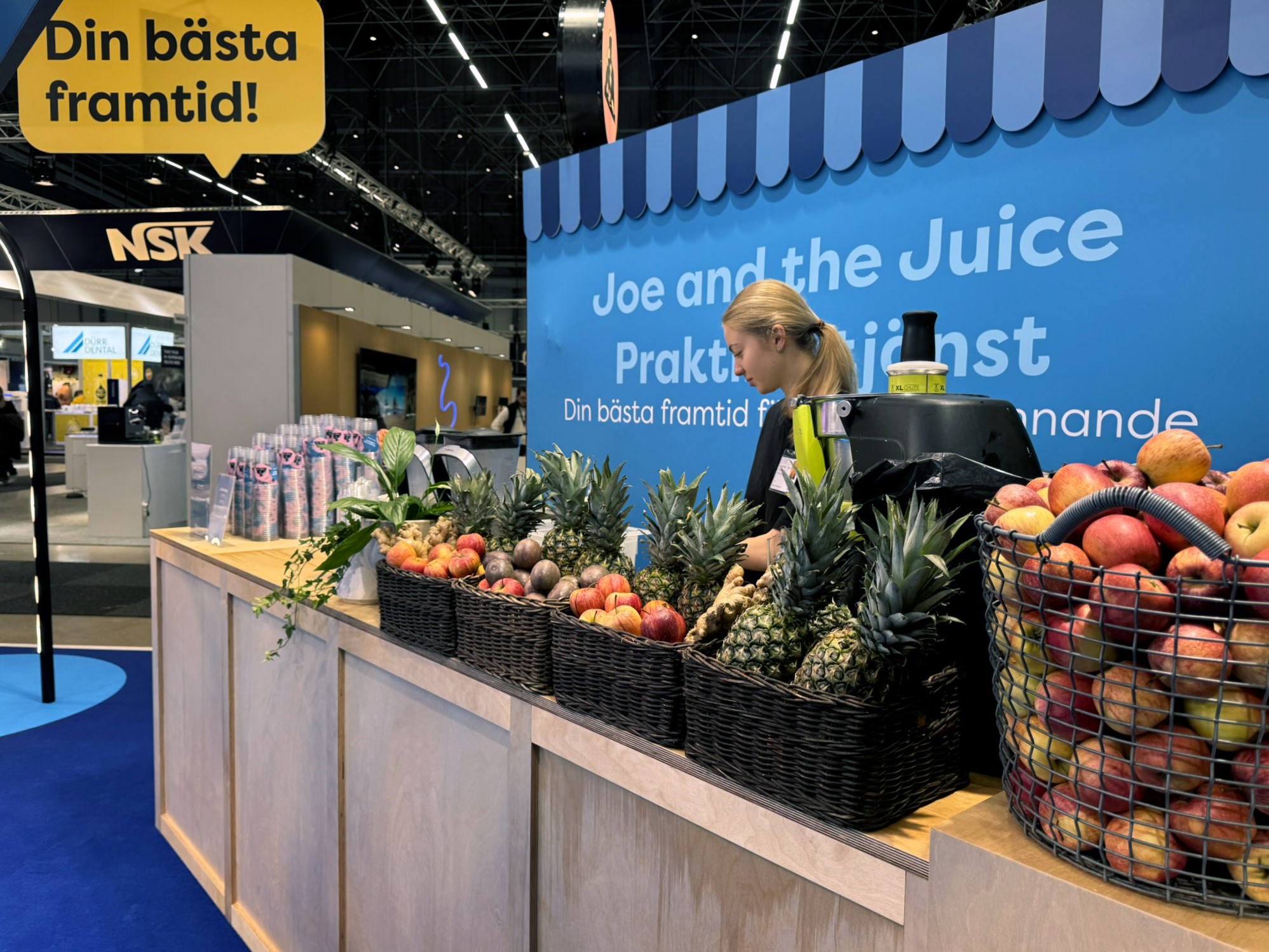 Resultatet blev en fullträff. Konceptet kombinerade en stilren och öppen design med hög funktionalitet och tydlig överblickbarhet. LED-belysningseffekter, storbildsskärmar och en färgsättning som stack ut gav montern en tydlig närvaro inne i mässhallen. Aktiviteterna bidrog till att skapa konstant flöde av besökare: en smoothiebar från JOE & THE JUICE, labyrintspel på tid samt frågesporten ”Vem vet mest?” blev naturliga dragplåster som gjorde att besökarna både stannade längre och återkom.